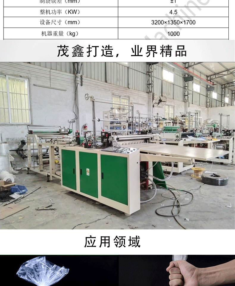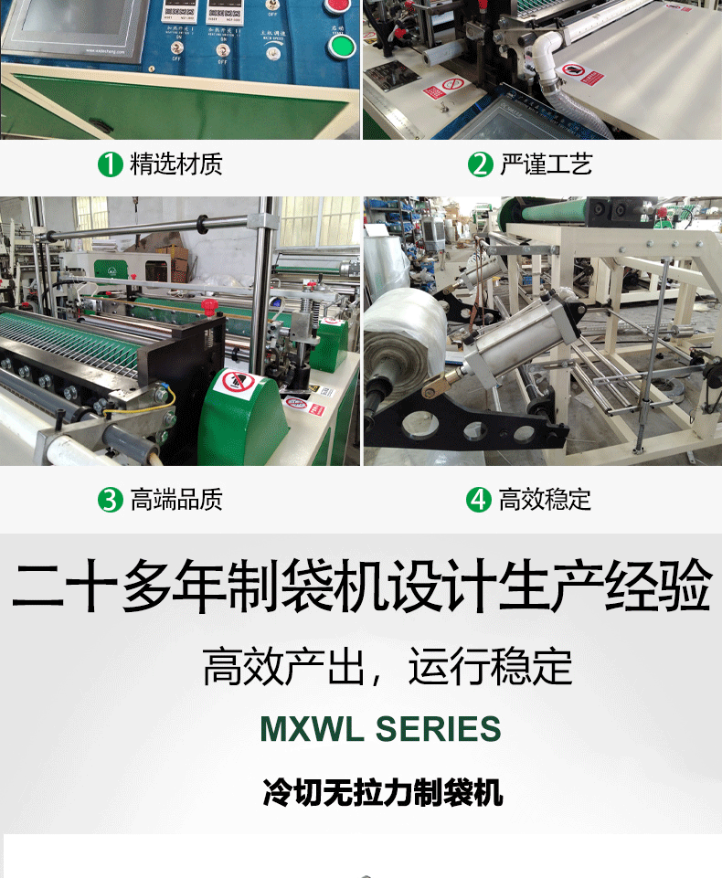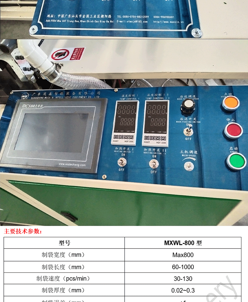 ![]() ![]() ![]() ![]() ![]() ![]() ![]() ![]() ![]() ![]() ![]() 特點: *該機適宜加工各擋HDPE、LDPE、PP等筒狀,塑料薄膜的本色或彩色平口袋、背心袋。 *該機特點是減少機器在運行中薄膜袋封口拉伸現(xiàn)象,能加工薄膜袋焊接寬度為1-10mm的袋子,增加袋子的焊接強度。 *電眼跟蹤彩印薄膜色標,圖文位置更準確。 *焊刀采用合金鋼加工制作,分三段加溫,兩端用加熱管加溫,單獨溫度表控制。 *焊刀后面加倍送,單獨伺服電機控制,壓力用氣缸控制。 *電腦設定制袋長度和速度,廢品少,操作更簡單。 *具有送料、封切、計數(shù)、出料、報訊等自動化功能。 主要技術參數(shù): ![]() *由于不斷研究改進,我司保留改變設計之權利。 |